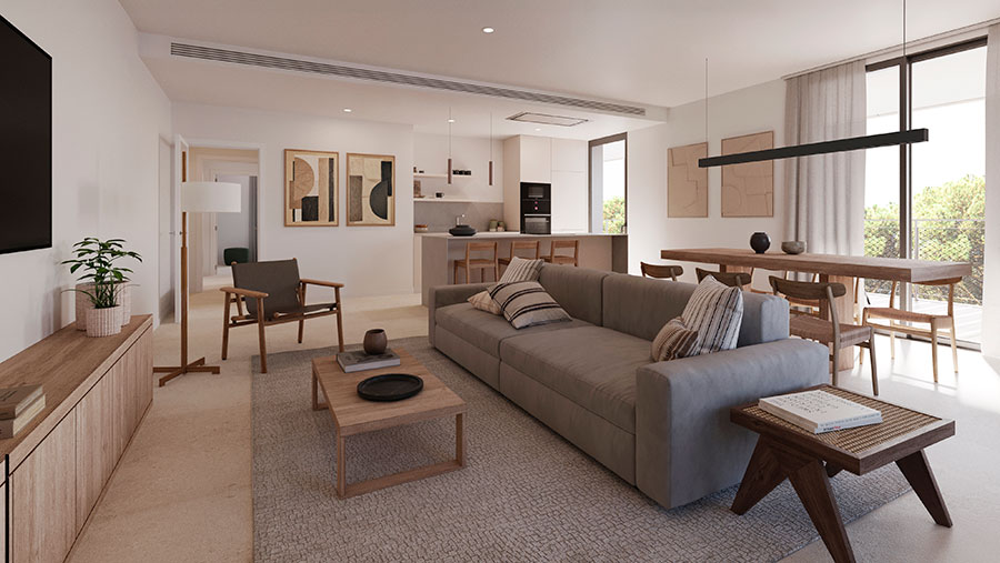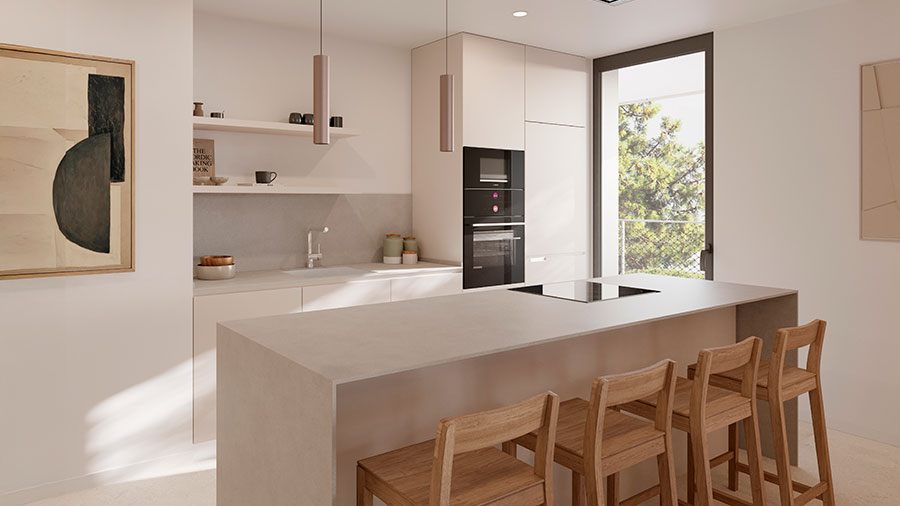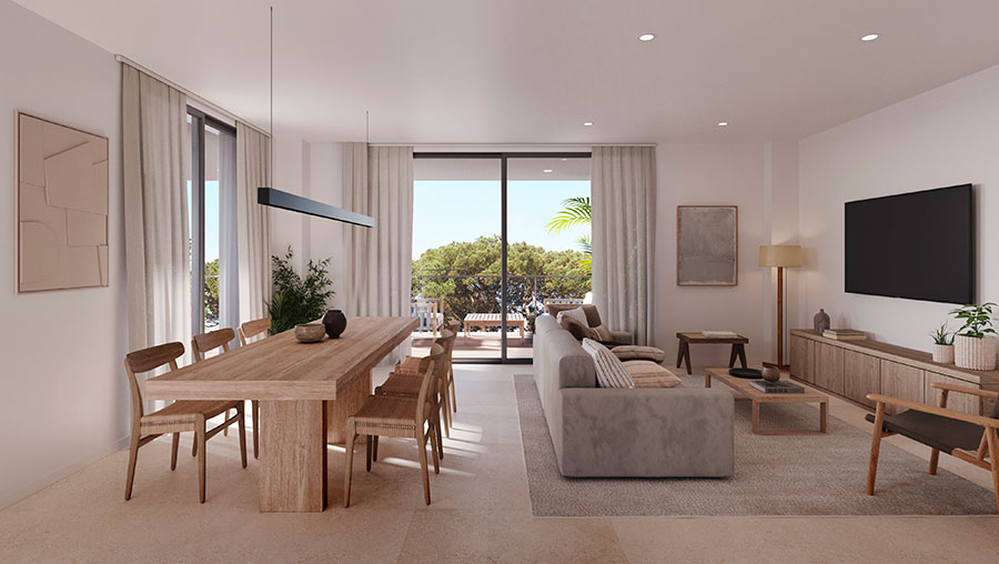 Je herkent het misschien, je komt ergens binnen en je voelt direct of het klopt. Bij Tramuntana zit dat in het licht, de rust en de manier waarop binnen en buiten in elkaar overlopen. Je appartement voelt ruim, maar niet kil. De woonkamer loopt vanzelf door naar je terras of tuin, omdat het buitenleven hier geen extraatje is, maar het uitgangspunt.