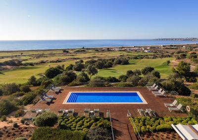 De golfbaan is onderdeel van de beleving. Niet omdat het moet, maar omdat het hier vanzelf past. Palmares heeft 27 holes, verdeeld over drie lussen van negen holes: Alvor, Lagos en Praia. Elke baan voelt anders, van meer groen en glooiing tot een kustgevoel met duinen en wind.